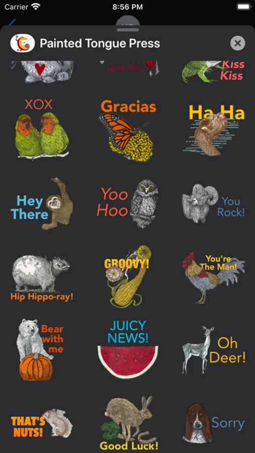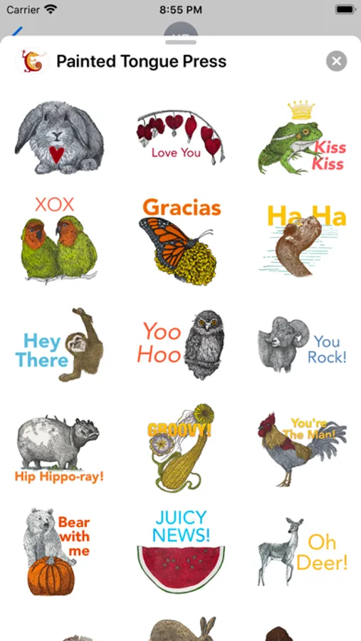 This sticker pack includes images from our handcrafted letterpress cards, photographed and specially formatted for iMessage. If you would like to learn more about our cards, you can visit our website at paintedtonguepress.com.