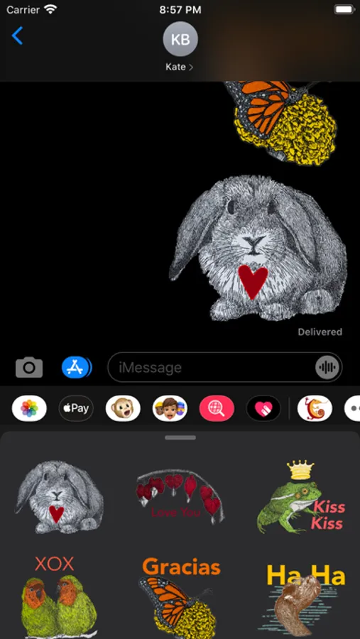 Artist Kim Vanderheiden hand draws elegant designs for our letterpress card series. We took some of our favorite designs and specially formatted them to become iMessage stickers. Though cards are for special occasions, we wanted to make these designs available for everyday use, and because they were made for both light and dark mode, they're perfect for nighttime too.