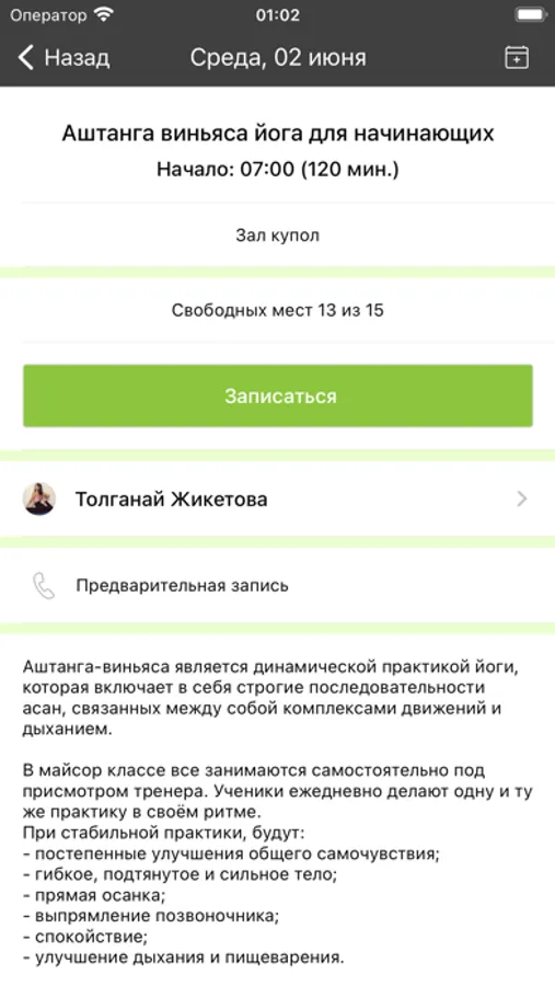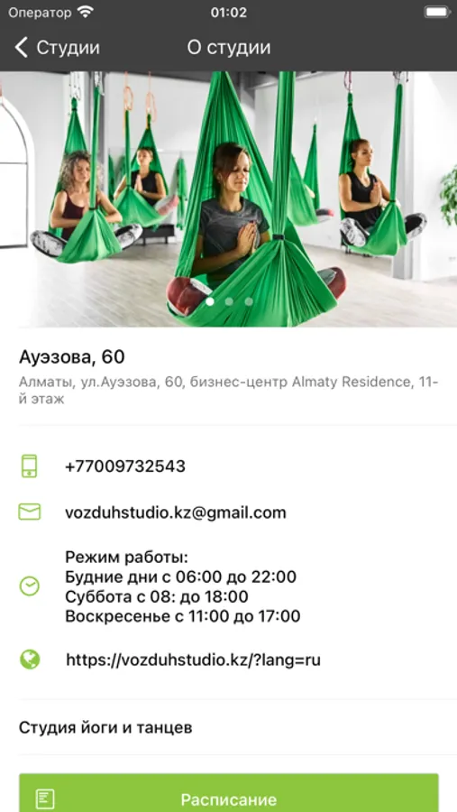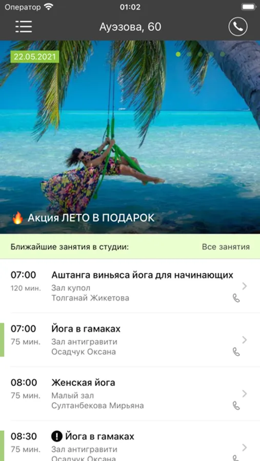 Приложение - это ваш электронный абонемент в студию Воздух. С его помощью вы можете записаться на занятие/отменить свою запись, оплатить абонемент, видеть историю своих посещений и срок действия абонемента, оперативно получать информацию об изменениях в расписании и специальных приложениях, а также накапливать бонусы