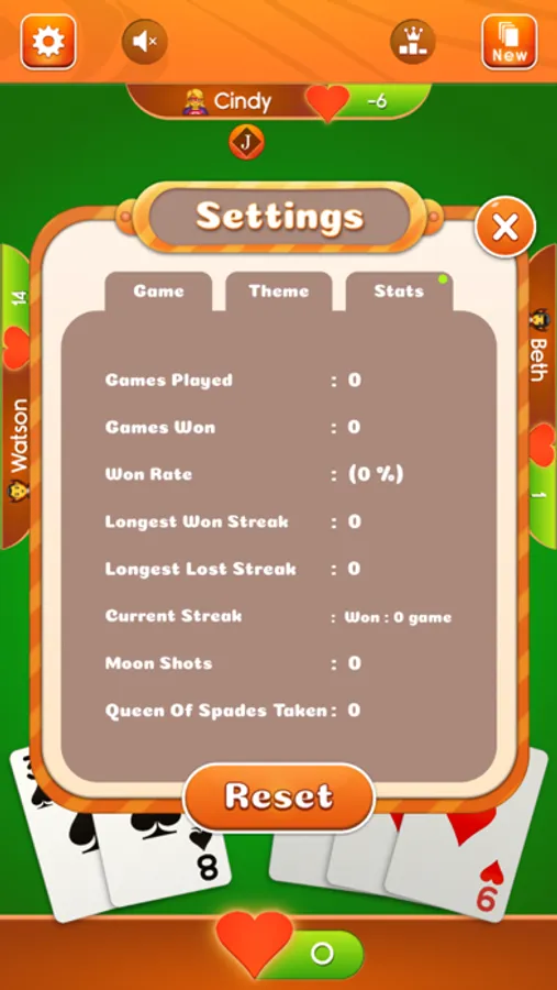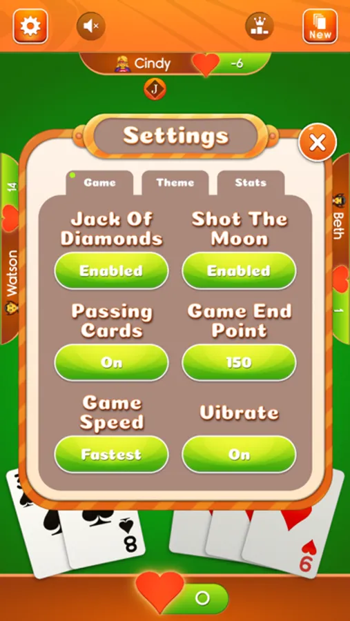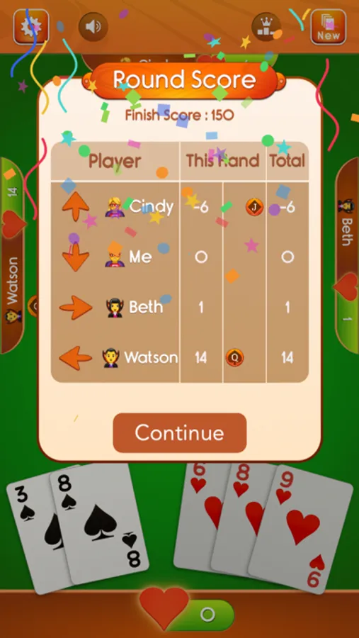 New user friendly design of Hearts card game for beginners and professional players. This Hearts game has some new features that make the game easier and exciting gameplay for you: