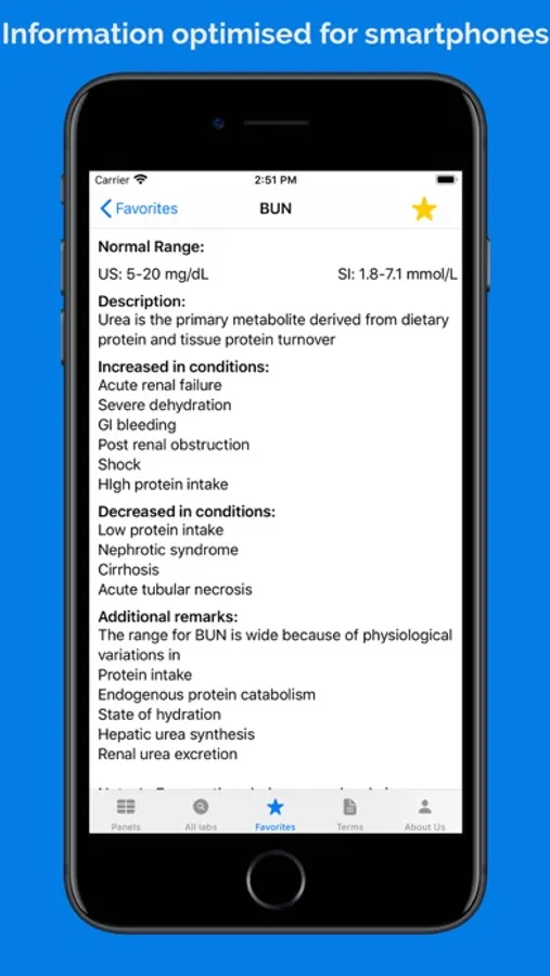 NOTE: The normal laboratory values differs due to conditions and reagents used. Please refer the product literature before reporting the results. The reasons behind abnormal values should always be read against clinical presentation. The information provided in our app is at times not comprehensive and should never be used for diagnostic purposes.