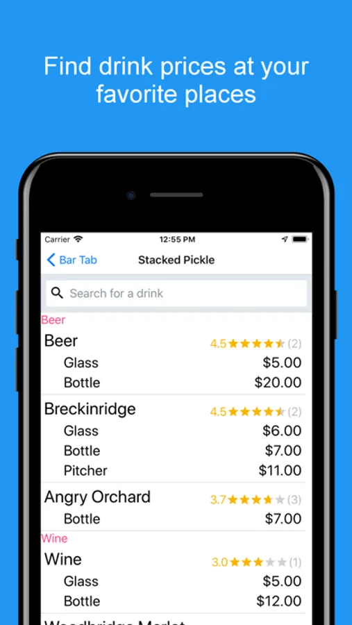 Bar Tab tells you how much a drink is before you buy it to help you avoid having to ask how much a drink costs.