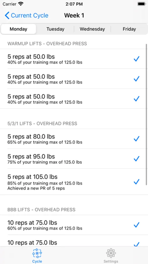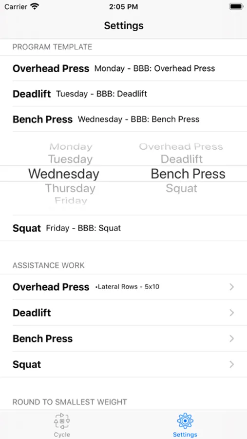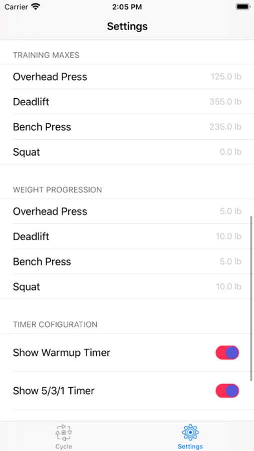 - Cycle weight progression customization
