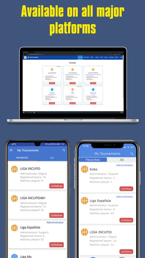My Tournaments is a multi-platform application, designed to manage neighborhood tournaments, it is completely free.