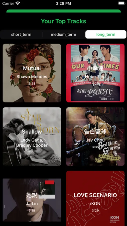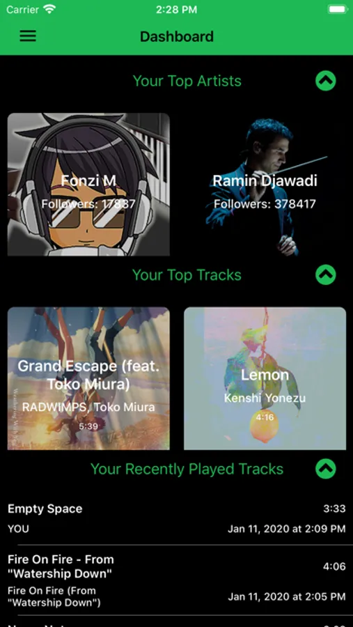 - View your top tracks, queryable by time range