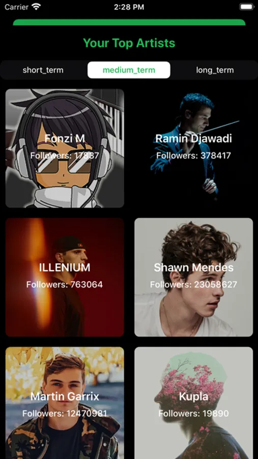 - View your top artists, queryable by time range