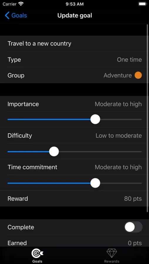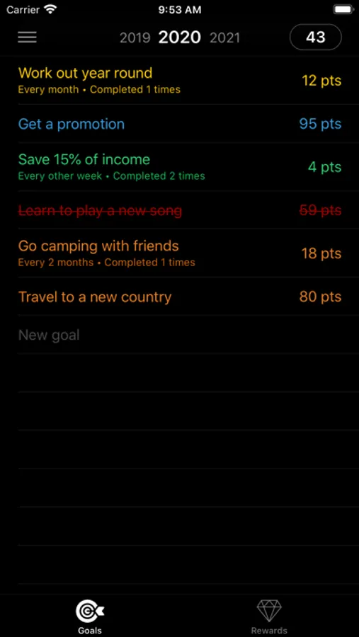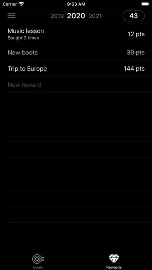 A simple app to earn points as you achieve your yearly goals and reward yourself with the things you love most!