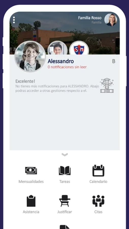 Esta App incluye la siguiente información: Noticias, Eventos, Notificaciones, Mensualidades, Calendario de Actividades, Calendario Académico (Tareas, exámenes, agenda, enlaces), Asistencia, Justificación de Inasistencias, Libreta de Notas y Cita con Docentes.