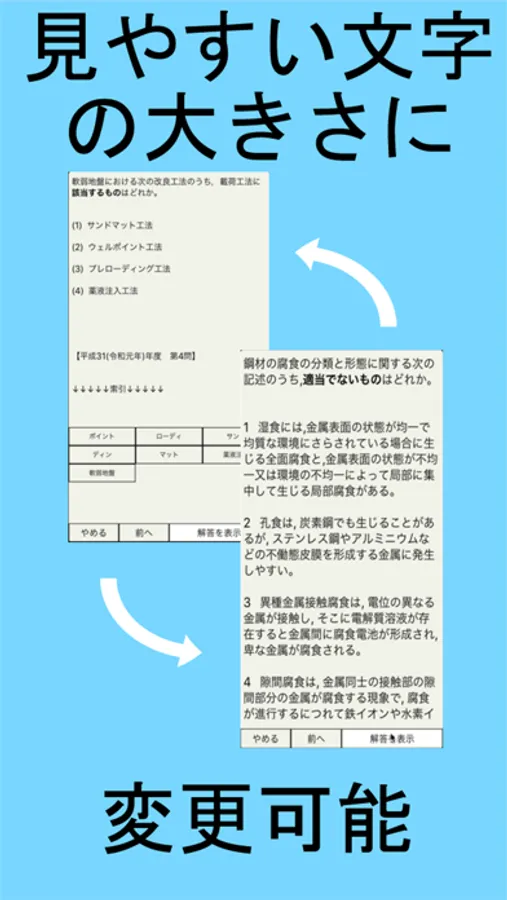 ※問題などは全てテキストデータで収録しているので、文字サイズの調整・自動フローを実現し、端末毎に見やすい文字サイズで提供しています。