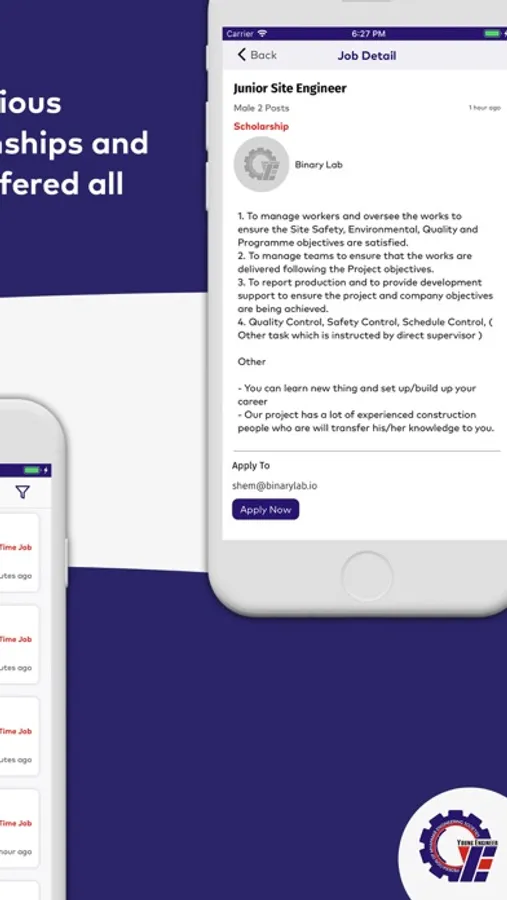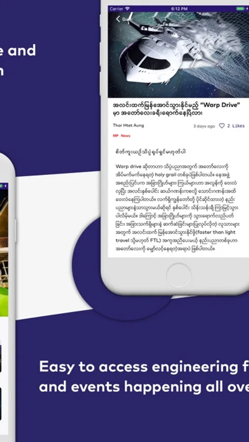 The main purpose of the application is to increase engagement among Myanmar young engineers from different fields and be informed about the latest informations in every engineering field. Moreover, the application will update new job opportunities for engineers of every field. The app also serves the purpose for young engineer students to help them get into professional field with new scholarship and internship opportunities and many more.
