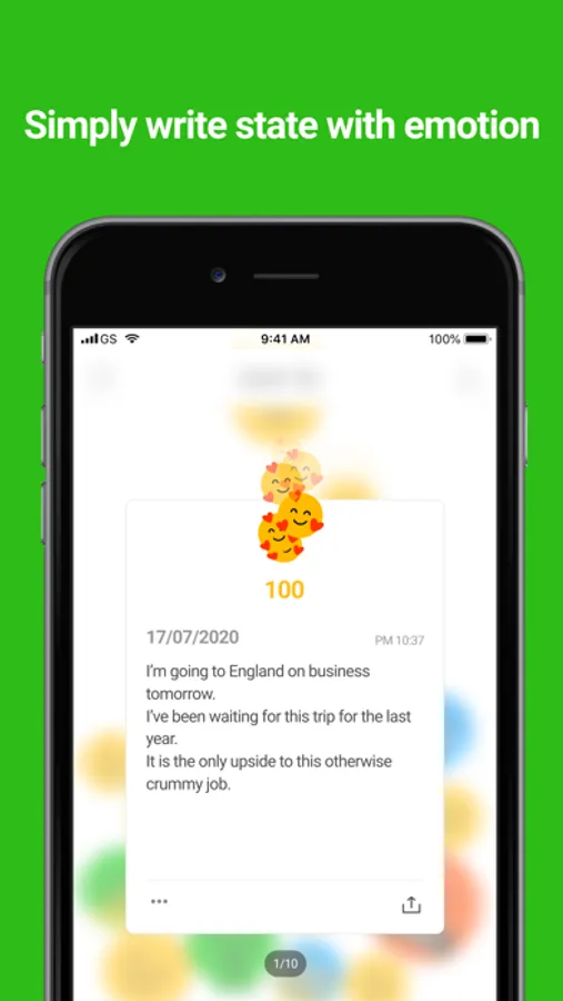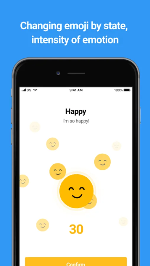 Each emotion can also record the intensity from 1 to 100. Just press the emoji just as you feel it.
