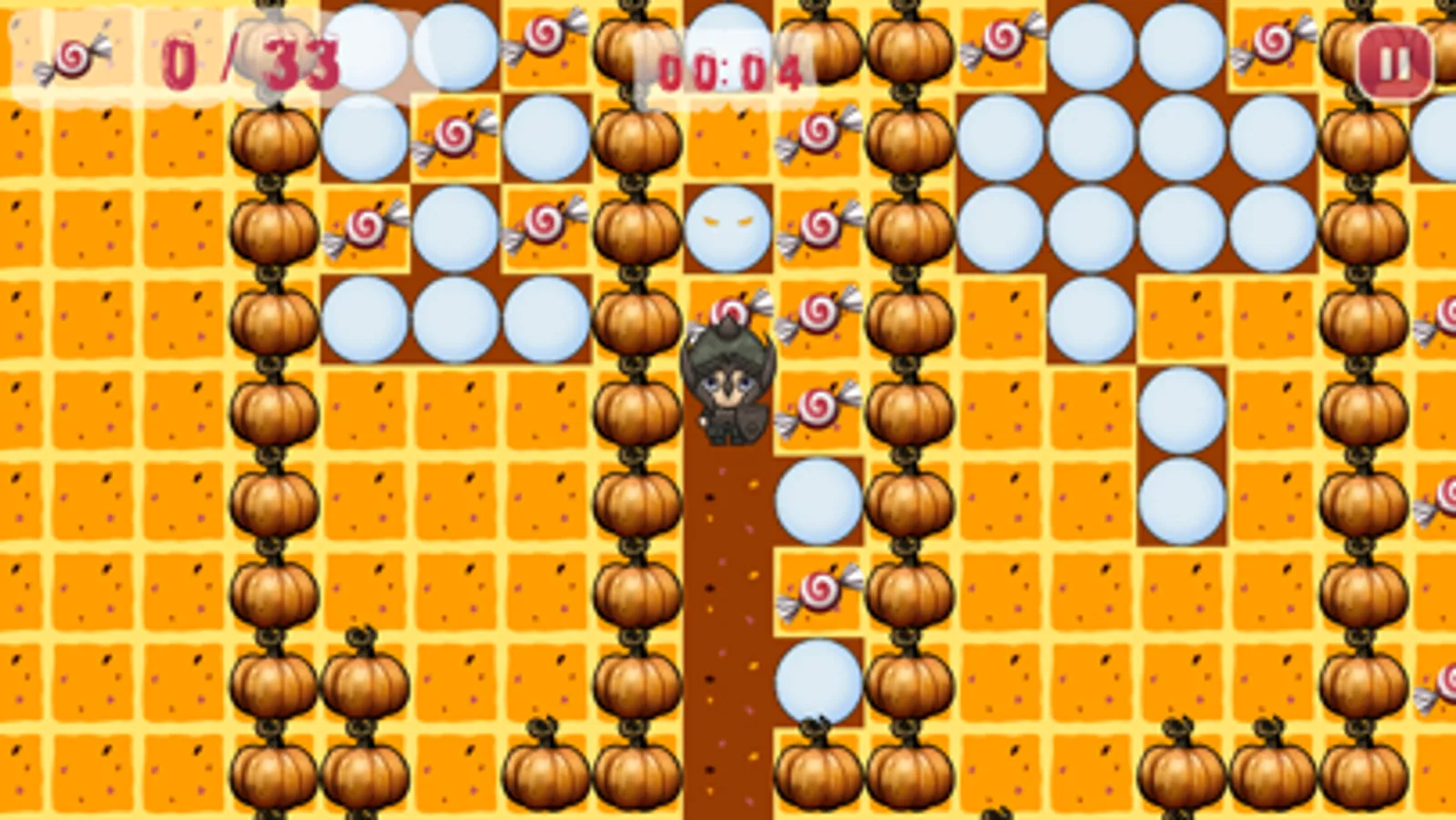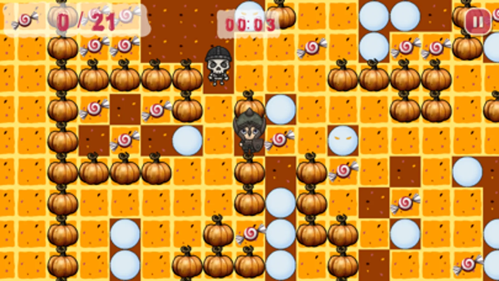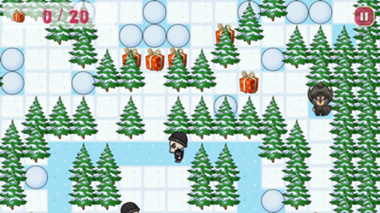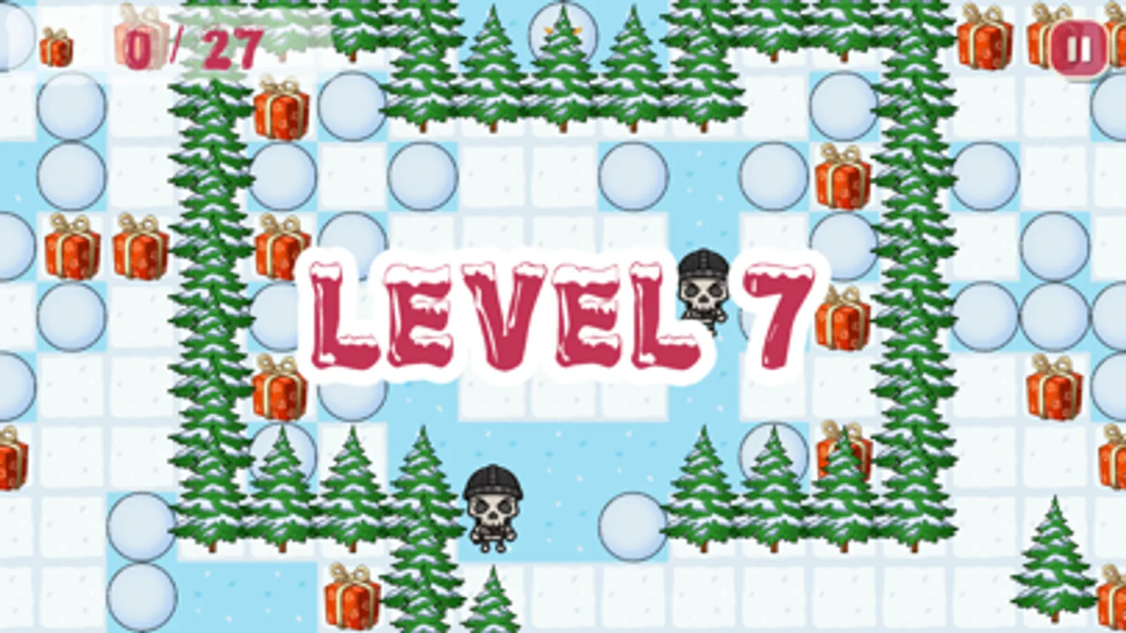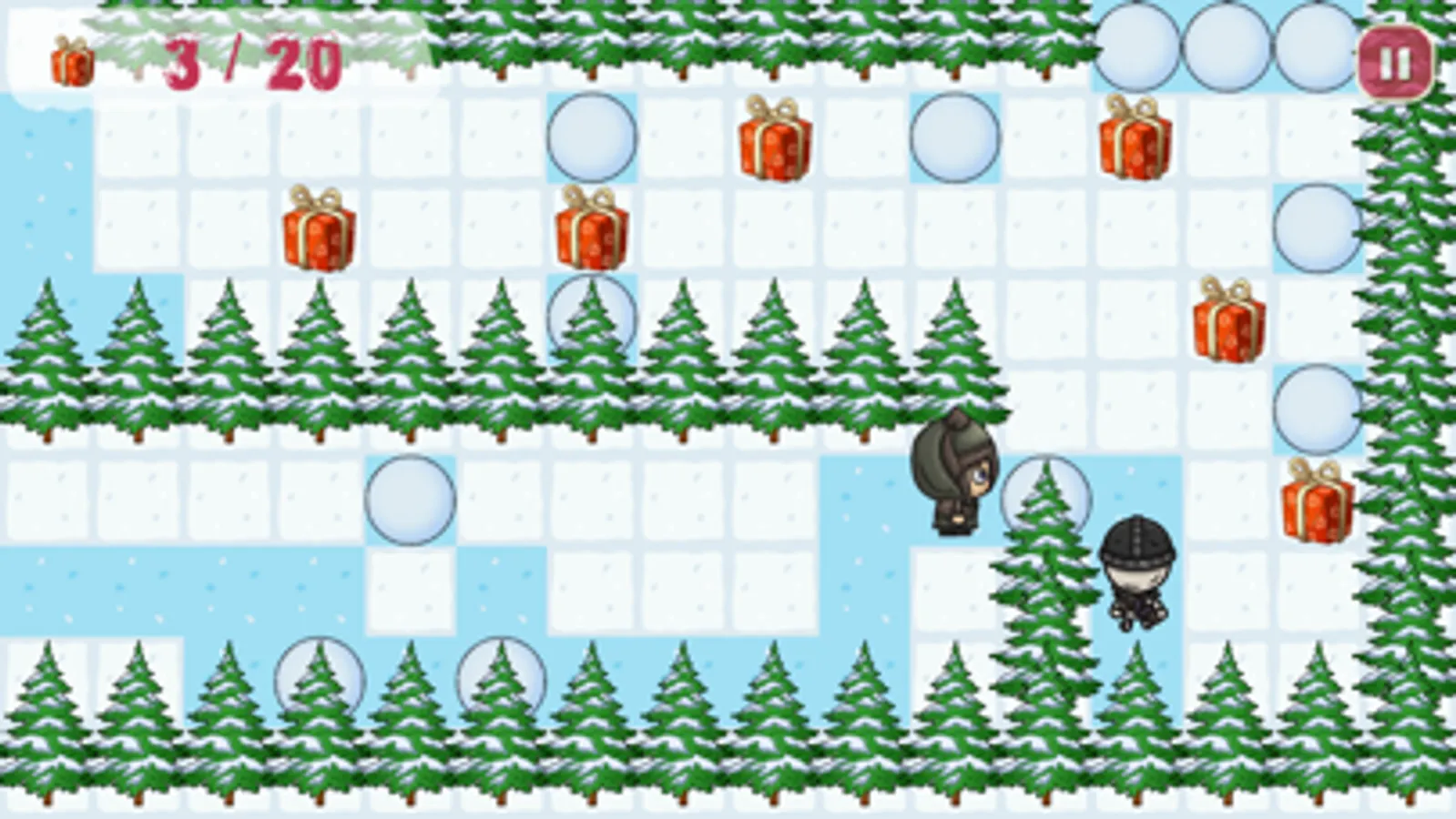 Hero is stuck in a winter and autumn landscape - help him collect all the presents from each level by solving puzzles and avoiding skeleton warrior that roam the forest, sleeping dark witch that can be woken up and falling snowballs that squash everything in their path.