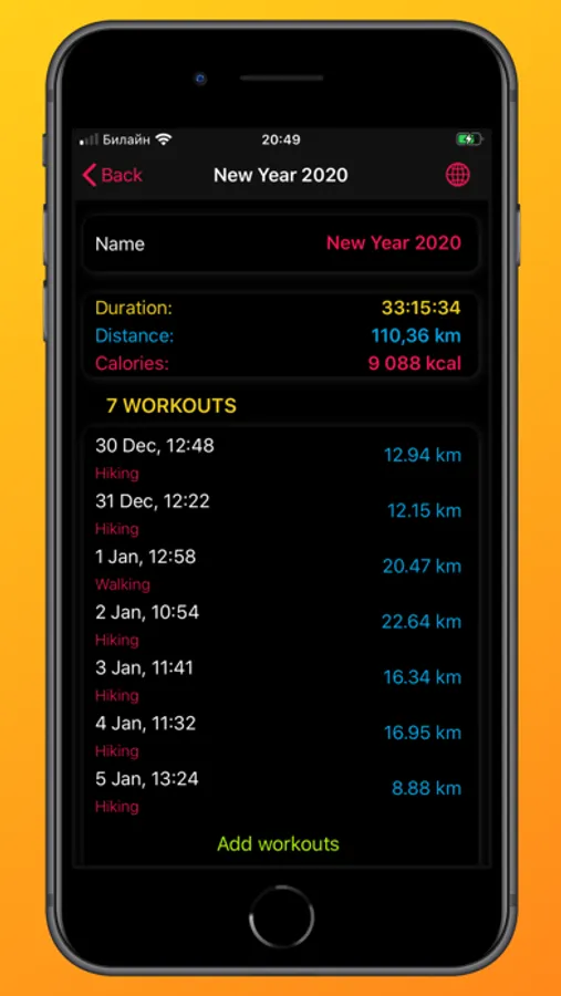 - manually exclude workouts after filters