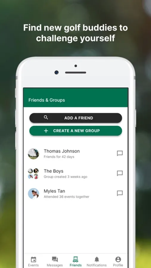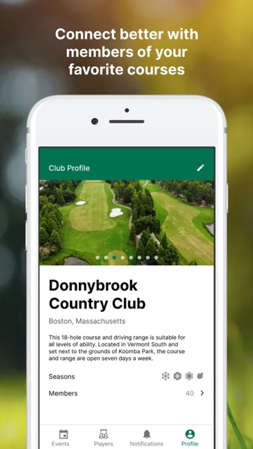 Private and public courses can make events to engage their membership to help the Club thrive. Members can communicate, interact and connect with each other on GolfRoster allowing them to be more active at the course. Club’s will also be listed on the app allowing members to list your club in their profile and search for other members at the club.