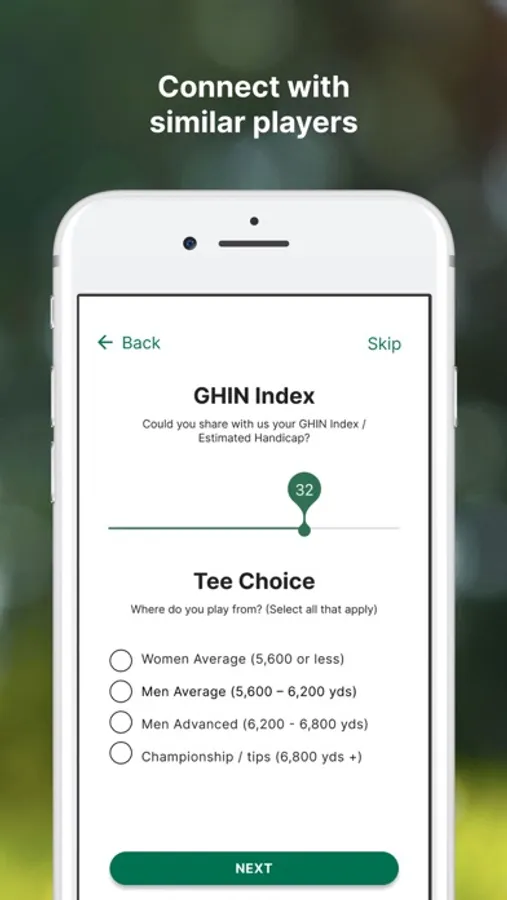 - Search for other golfers by: handicap, location, favorite golf courses, age, tee choice, and more.
