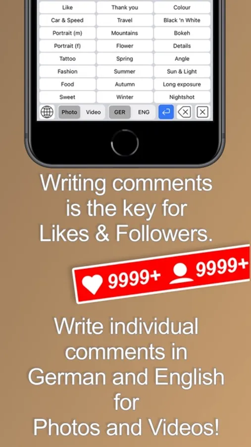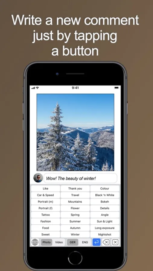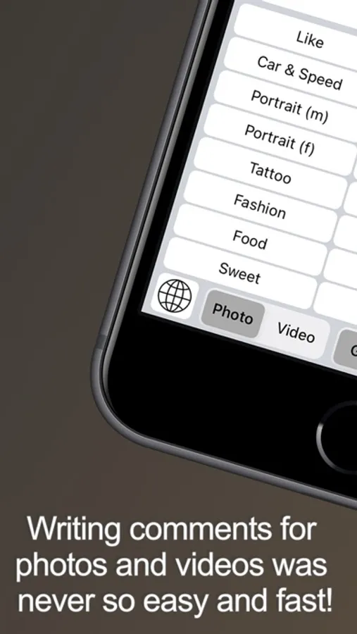 This App will help you to easily and quickly create individual comments for photos or videos on any Social Network or Photo Platform!