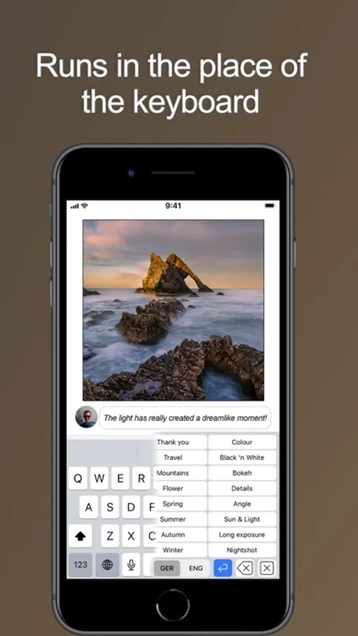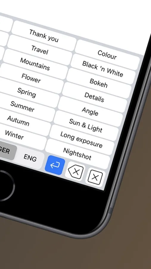 24 categories available for comments e.g. portrait, travel, black-and-white, winter or long-exposure. Each category has more than 40 different comments which can be extended with individual smileys and symbols.
