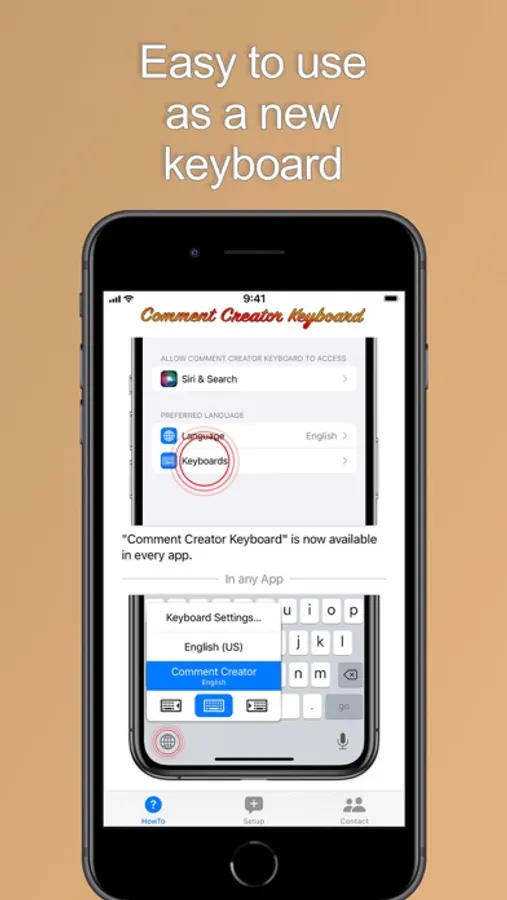 Using the "World" icon at your normal keyboard, you can now select Comment Creator as your keyboard anywhere and have comments created directly to any App.