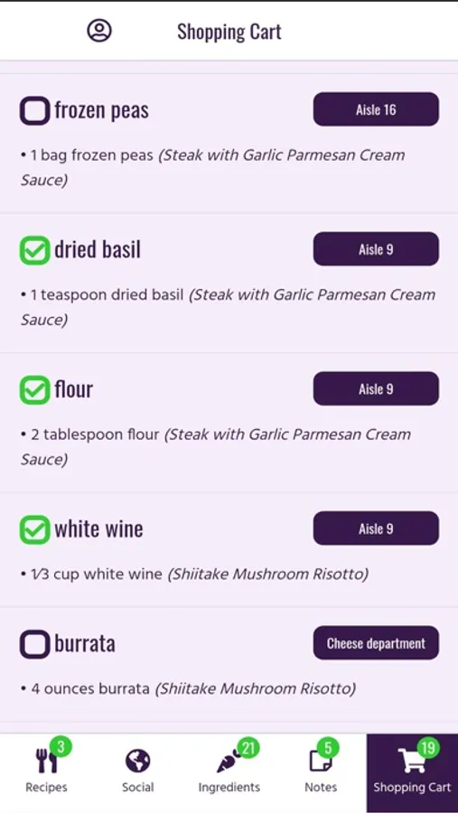 Either input existing recipes or search for new recipes, and Listacart will help you create a shopping list and show you where to find ingredients!