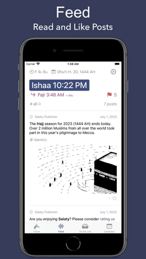 - Displaying the Hijri Date accurately using lunar calendar server synchronization across multiple countries and timezones. For more information on the supported time zones, please visit our support page (i.e., salaty.app/support)