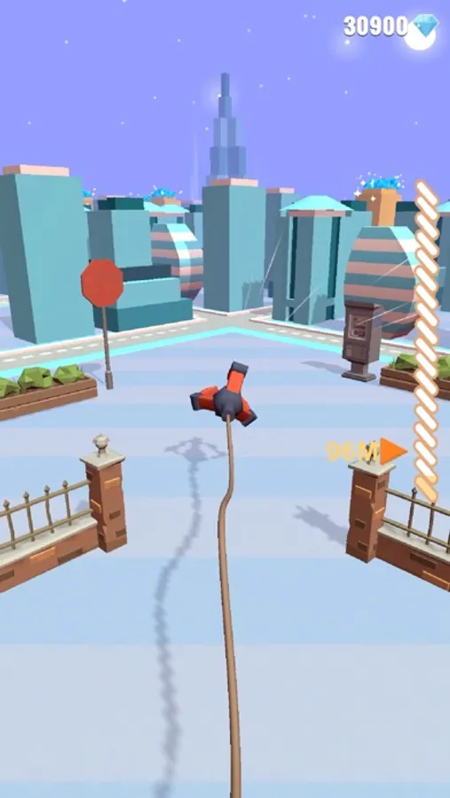 Fire your hook towards the monument in the middle and tear down the buildings to earn big money.