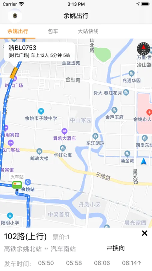 余姚公交的实时查询,大站快线的公交查询,包车等