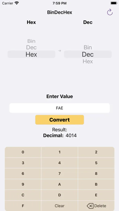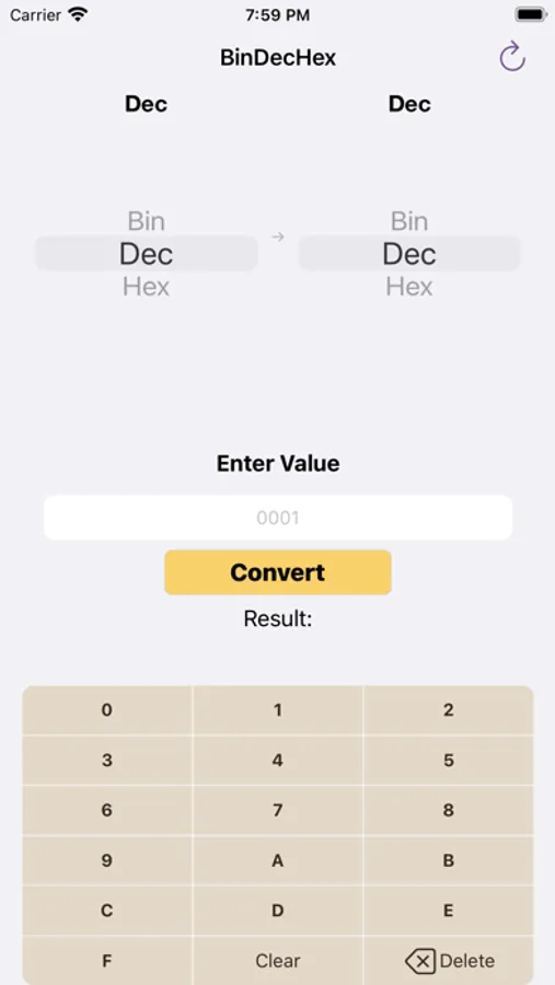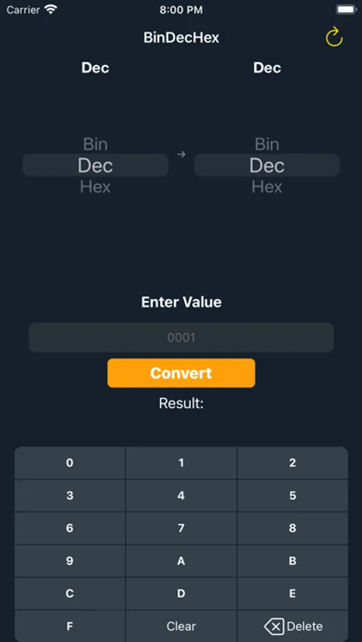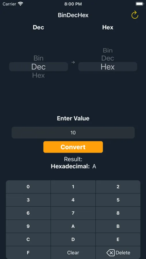 This is a binary, decimal, hexadecimal calculator. The user chooses one of the three formats for their input value, and converts that value into one of the other two formats.