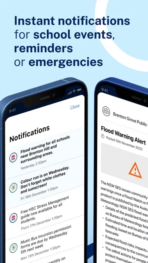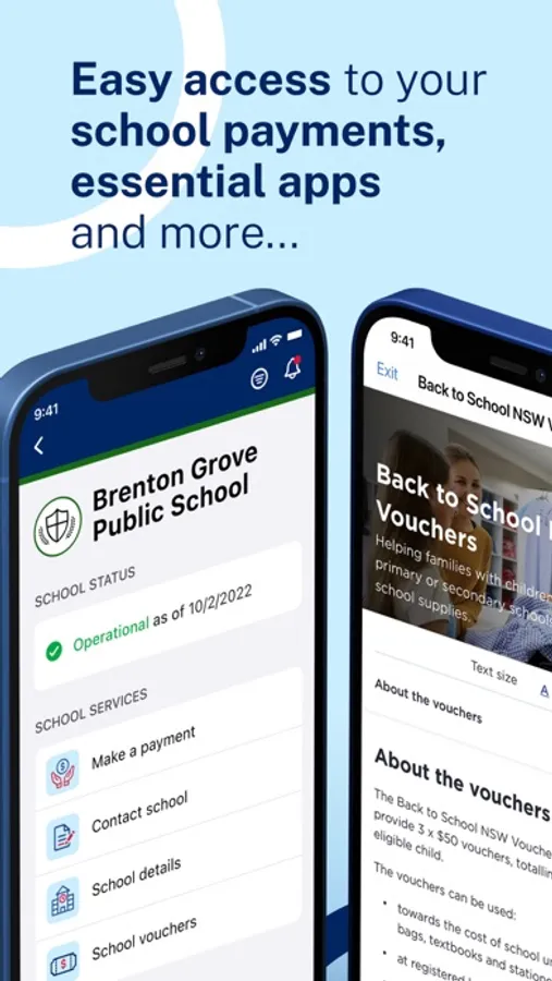 Get push notifications sent directly to your phone so you never miss any important news or an upcoming event. You can also receive emergency updates such as school closures, get easy access to essential apps, and apply for the 'Back to School NSW' vouchers.