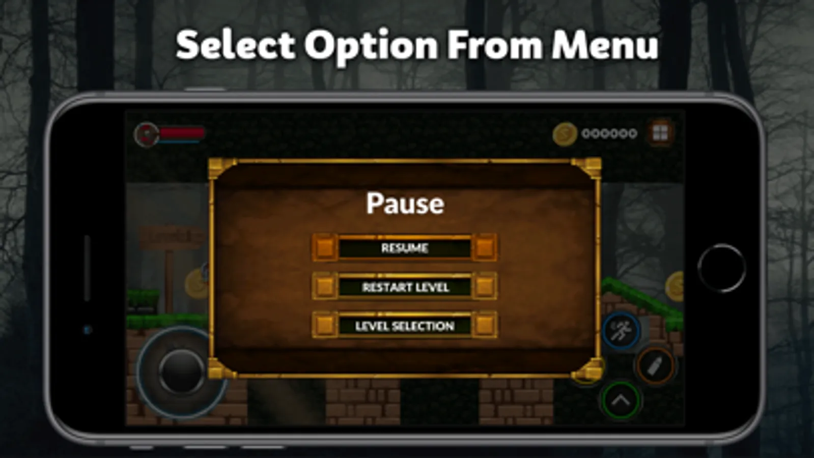- Jump, run, fast move and shot controls.