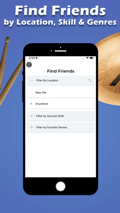 • Use our advanced search lets you find people near you or anywhere by their preference of instrument, skill and music genre