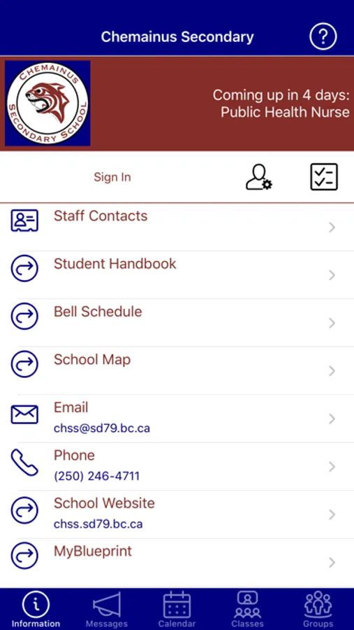 This is the official Chemainus Secondary School mobile app. NOTE: This app is only useful for students, parents, and staff at this school.
