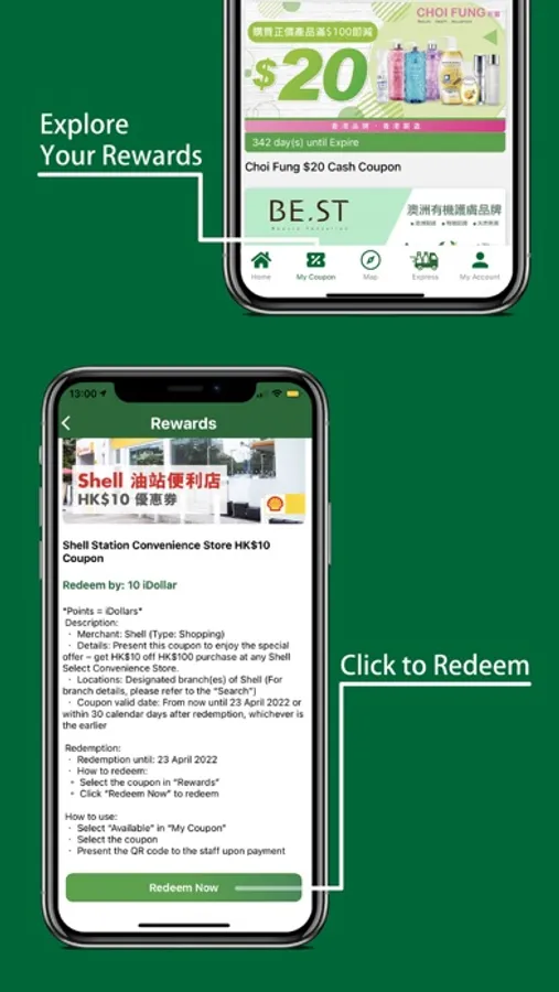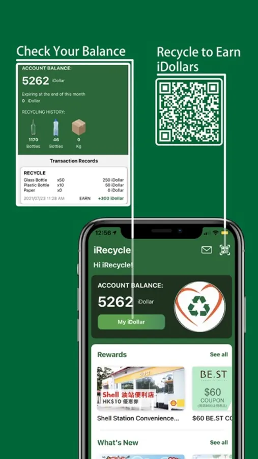 'My Coupon': Earning the iDollar by recycling for redemption of favorite rewards from different merchants;