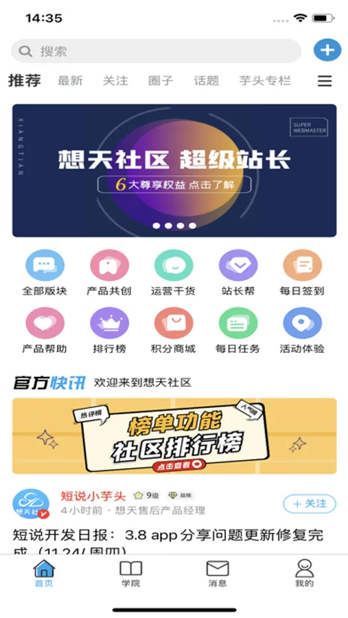 社区:用户可在社区中查看系统推荐的帖子,也可查看关注人发布的帖子。