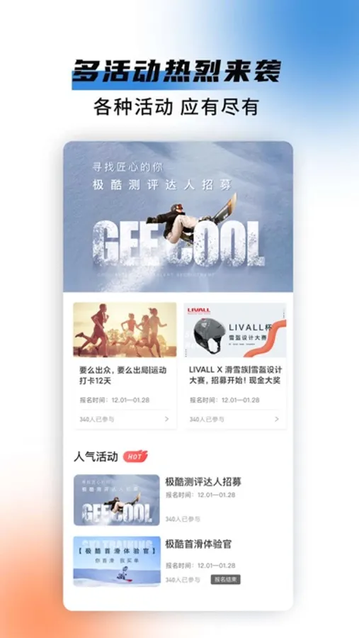 十七种运动的票务、活动和场地,伴随你的专属轨迹档案,让更多人爱上户外运动!
