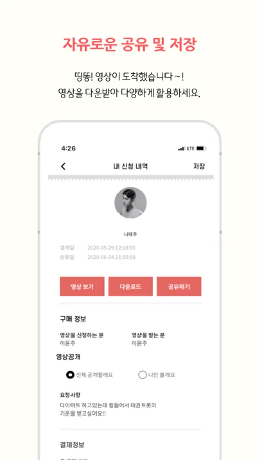 - 신청 후 일주일 이내로 영상 메세지 수신