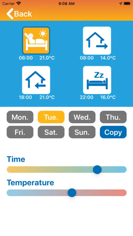 ● Program and control your thermostats via Wi-Fi at home or outside.