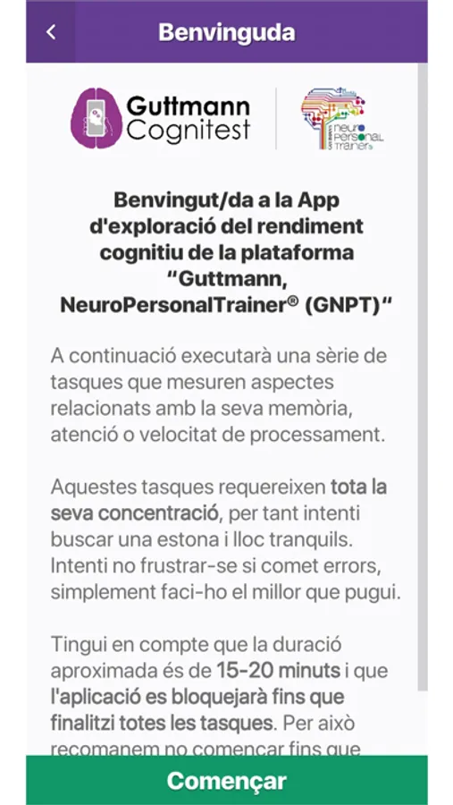 Guttmann Cognitest® es una aplicación para la valoración del rendimiento cognitivo propiedad de la Fundació Institut Guttmann.