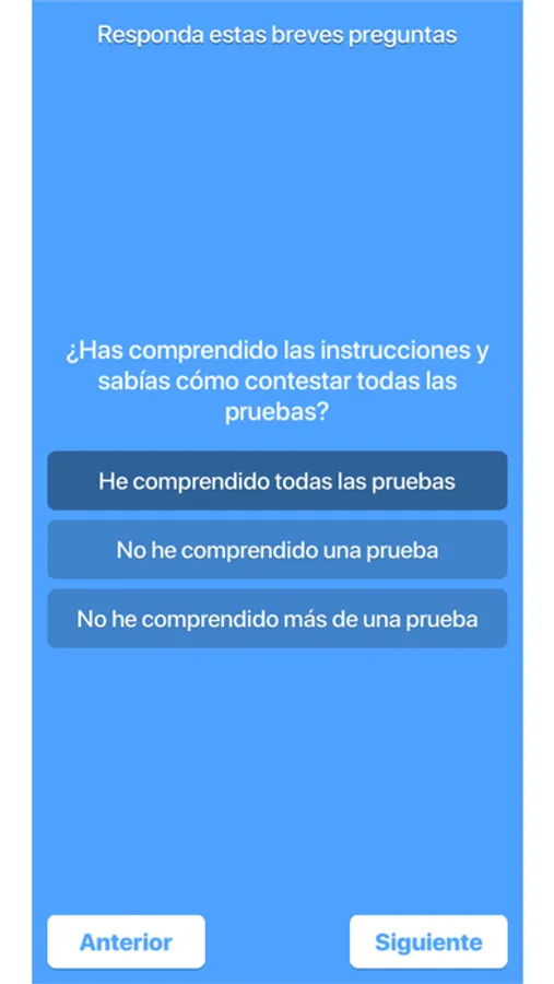 - Memoria largo plazo: al igual que la primera tarea, pretende medir la capacidad de recuperar información sobre una asociación previamente memorizada, pero en este caso transcurrido un tiempo mayor.