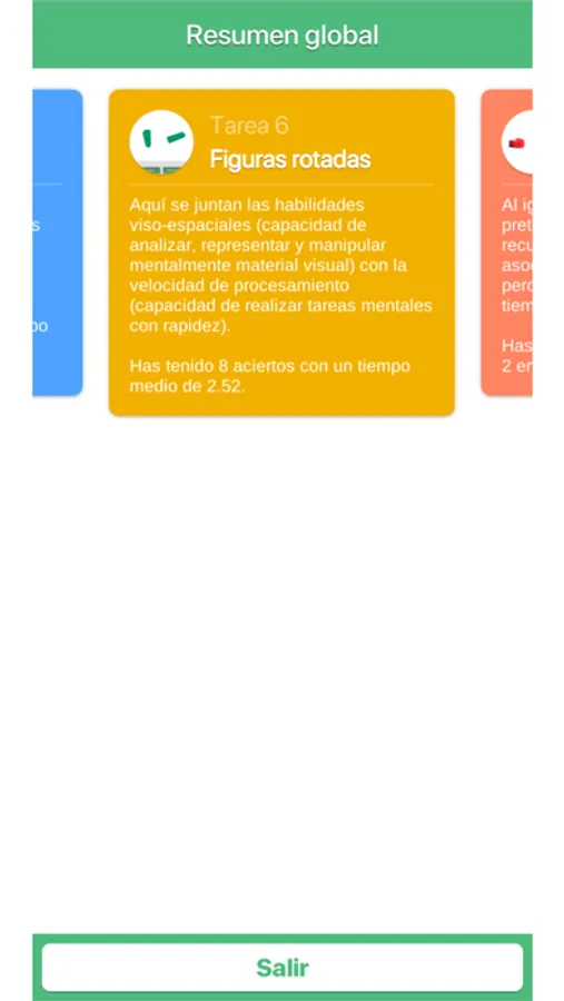 - Círculos de colores: mide la capacidad de resolver interferencias que se producen entre información conflictiva a la hora de tomar una decisión.