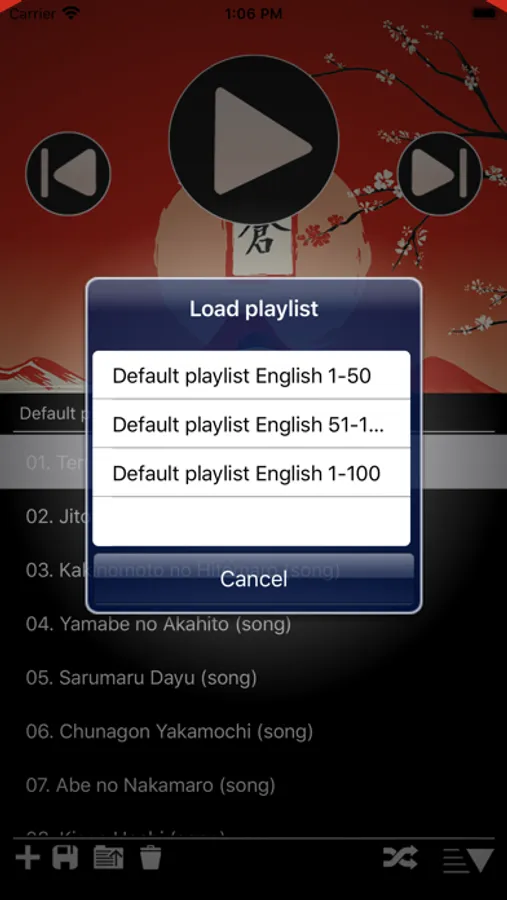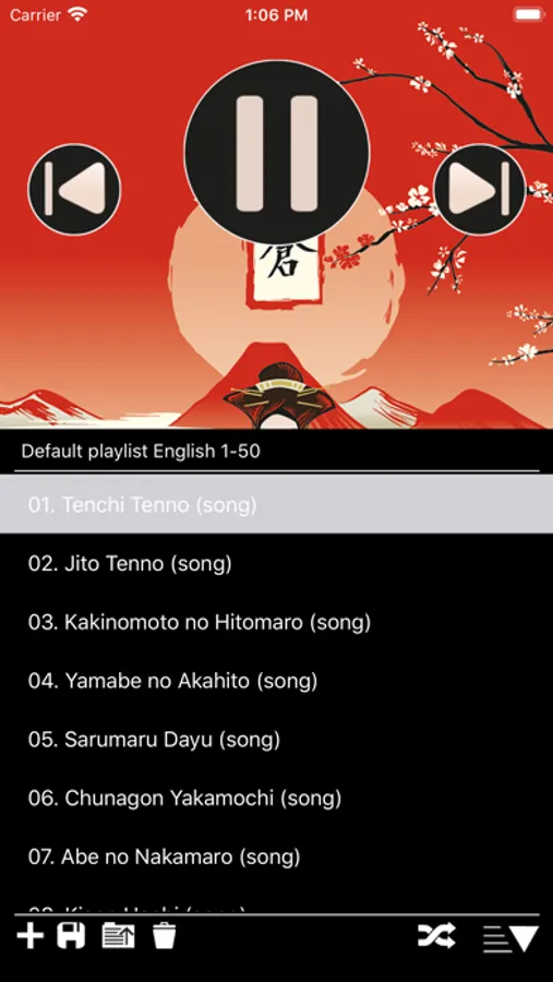 This app is a reader app (singing) which is a companion app to use together with the Hyakuninisshu English Translated Karuta (poetry card game). The app is ideal to use as the reader for the card game. This reading keeps the original meter and rhythm from the traditional Japanese poems (5-7-5-7-7) which is sung, rather than read. This recording is an English translation of the original Japanese poems called Hyakuninisshu, which means one hundred poems by one hundred poets.