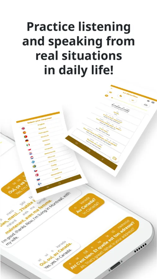"Learn French - Listening And Speaking" is one of PORO’s ongoing apps for self-learners who want to speak French easily and effectively. With 750 daily dialogs, a list of lessons with various topics from greeting, introduction, shopping, business conversation, family talks, etc…. It's suitable for all French learners from beginner to intermediate and advanced learners to practice speaking French.
