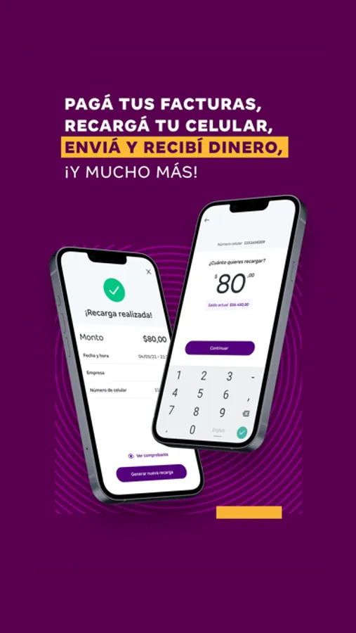 Pagá tus facturas, recargá tu celu, recargá tu SUBE, recibí y transferí dinero directo desde tu celular. Todo en una sola app, de forma rápida y segura, en sólo unos pocos clicks.