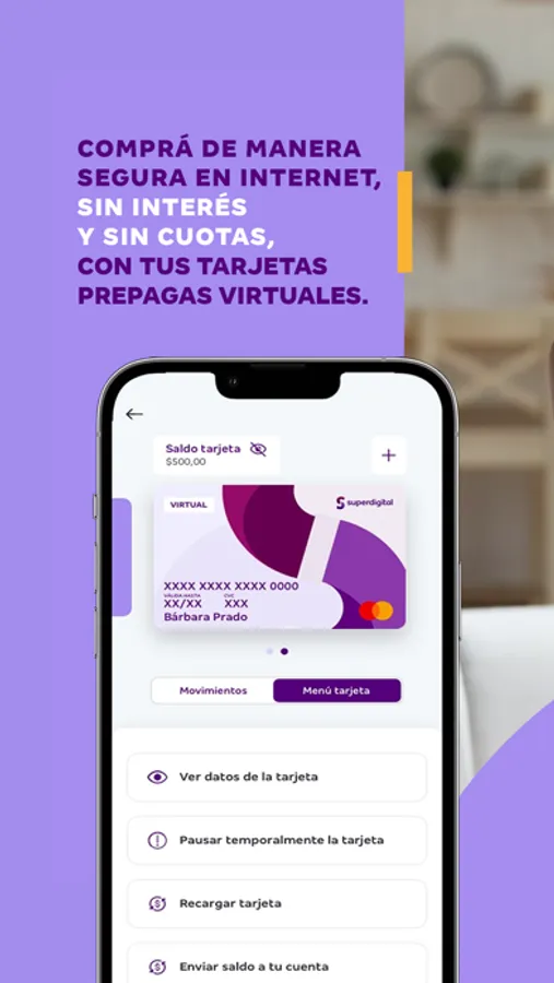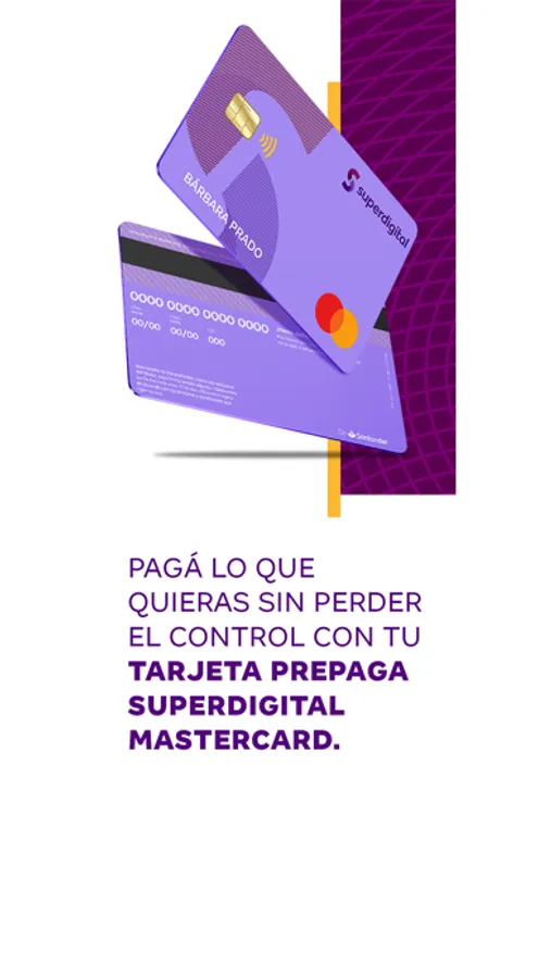 Además, comprá en miles de locales y en Internet con tus tarjetas Prepagas virtuales y física Superdigital Mastercard®. Mantené el control de lo que compras, sin preocuparte con cuotas ni intereses y sin tener que pagar costos de mantenimiento.