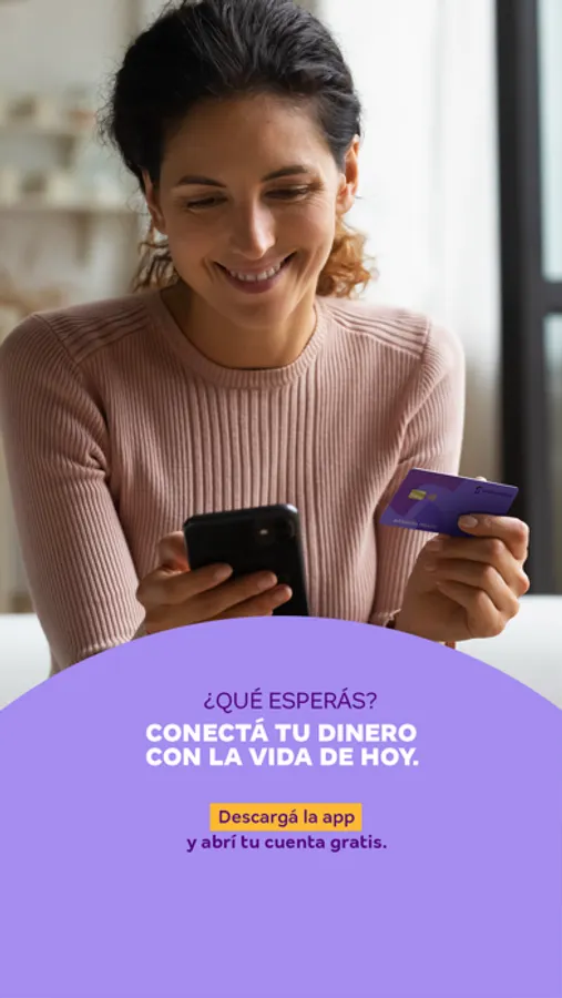 Somos la cuenta gratis 100% digital hecha para todos y pensada para vos. No tenemos tarifas escondidas, ni tampoco letras chicas. Acá lo resolvés todo directo desde tu celular, así de simple, así de práctico.