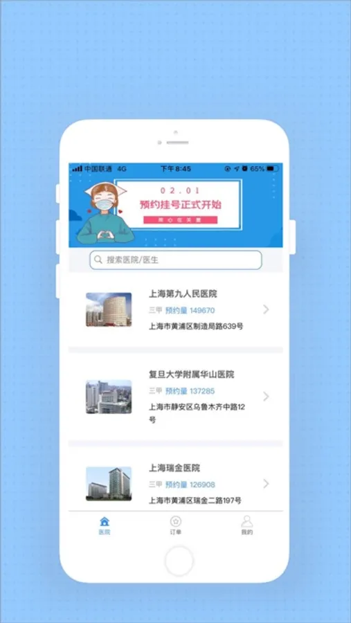 app服务覆盖上海华山医院,上海九院,上海中山医院,上海瑞金医院,上海长征医院,上海肿瘤医院,上海新华医院,上海五官科医院,上海第六人民医院,上海龙华医院,上海曙光医院,上海仁济医院,上海长海医院,上海东方医院,上海东方肝胆医院,上海肺科医院,上海胸科医院,上海儿童医院,复旦儿科医院,上海妇产科医院等几十家上海重点三甲医院。帮助患者尤其是外地患者的协助就诊。 免责声明:用户做出任何医疗决定时,必须去专业的医疗机构寻求医生的建议,本平台不提供任何的医疗决定服务。