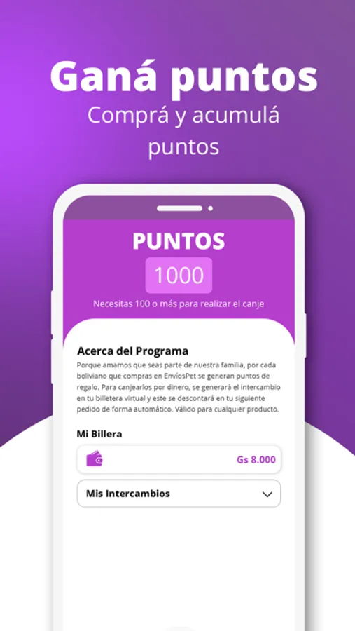 Por cada compra que realices, podrás obtener puntos que podrás canjear por dinero virtual. ¡Mientras más compres, más puntos obtendrás!