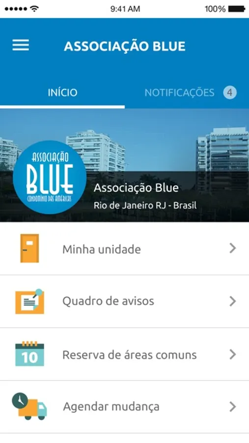 O aplicativo Associação Blue é destinado a moradores e funcionários da Associação Blue.