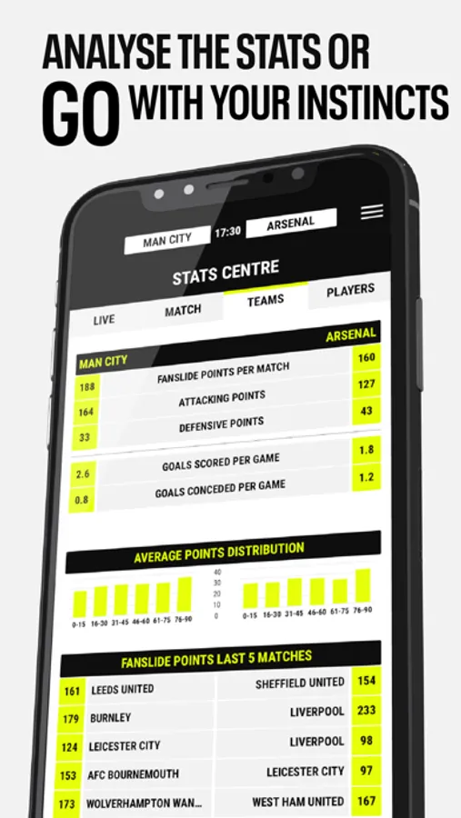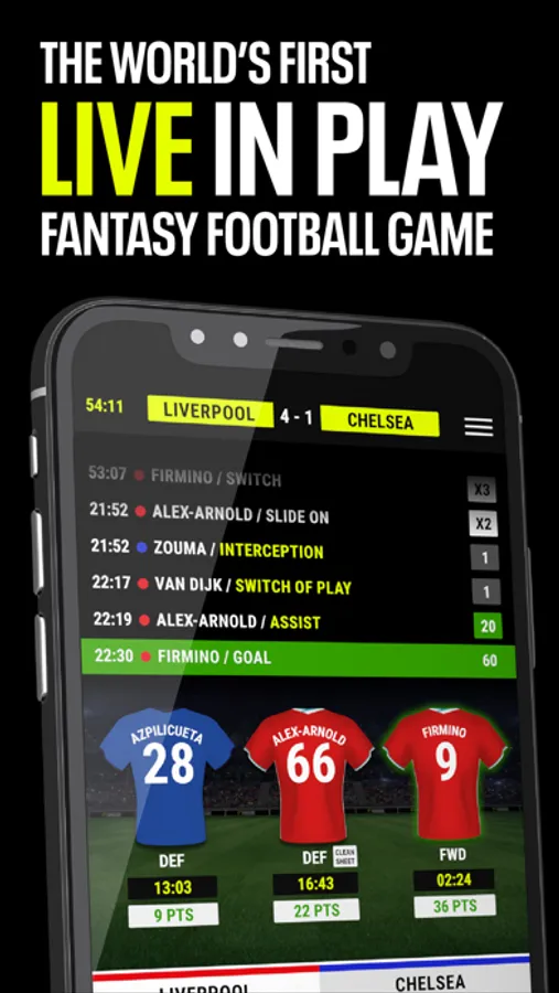 Fanslide is powered by live data from Opta, updating you in real time with all the events that matter in the match, the second they happen for a truly live fantasy football experience. Points are awarded for a range of events, from interceptions and dribbles worth 1 point, defensive blocks and tackles worth 2 points, to goals worth 20.