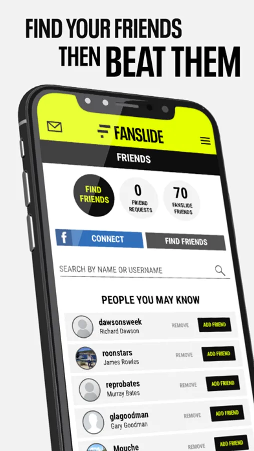 Connect with your friends on Fanslide and create groups to compete directly against them. Chat with other fans on live football matches across the World Cup, Premier League, Championship and Champions League and try to increase your Fanslide Rating over time to prove your skills to the rest of the fantasy football community.