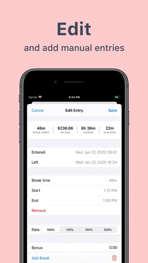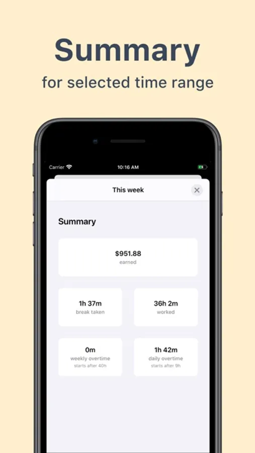 Hours Tracker is an app for hourly employees to track working hours, break time, overtime and salary.